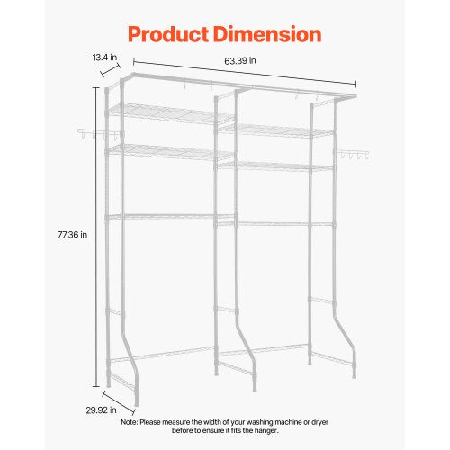 Optimierter Stauraum: Dieses Lagerregal für Waschmaschine und Trockner ist mit Metallregalen, Kleiderstangen und Haken ausgestattet und bietet eine einfache Möglichkeit, leichte Kleidung, Handtücher oder Reinigungsmittel aufzuhängen. Sein kompaktes Design passt für die meisten Waschmaschinen und Trockner mit einer Breite von bis zu 30,5 Zoll und ist somit ideal für kleine und große Waschküchen.