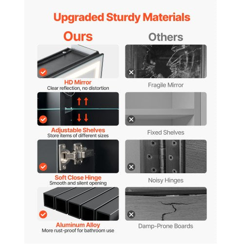Unterbeleuchtung: Unser LED-Badezimmerspiegelschrank verfügt über eine Unterbeleuchtung, die den Badezimmerspiegel nachts beleuchtet und so den Zugang erleichtert. Die Soft-Close-Scharniere sorgen für einen sanften und leisen Betrieb und sorgen dafür, dass Familienmitglieder nicht gestört werden.