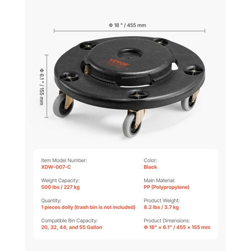 Runder Mülltonnenwagen, passend für 20, 32, 44, 55 Gal Mülltonnen, 500 lbs | EU