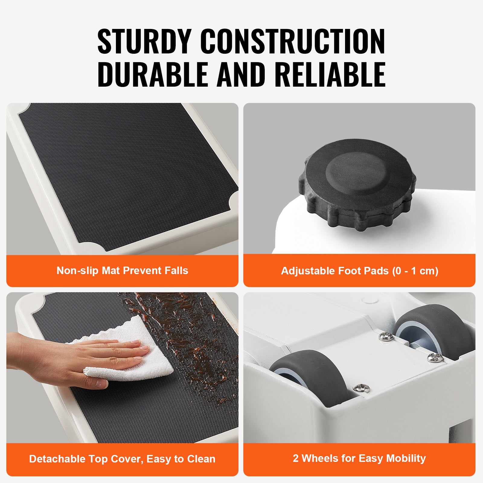 Stabil und mobil: Die Anti-Rutsch-Matte bietet eine stabile Unterlage und verhindert versehentliches Ausrutschen. Verstellbare Füße (0–1 cm) passen sich verschiedenen Oberflächen an und ermöglichen präzise Messungen. 2 Räder ermöglichen einfaches Bewegen.