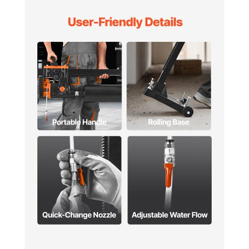 Überragende Bohrlochqualität: Unsere Diamantkernbohrmaschine bietet sowohl Nass- als auch Trockenbohrmöglichkeiten. Beim Nassbohren werden Bohrspäne weggespült und der Bohrer mit Wasser gekühlt. Das reduziert den Staub und verbessert die Gleichmäßigkeit des Bohrlochs – ideal für Renovierungsprojekte im Innenbereich.