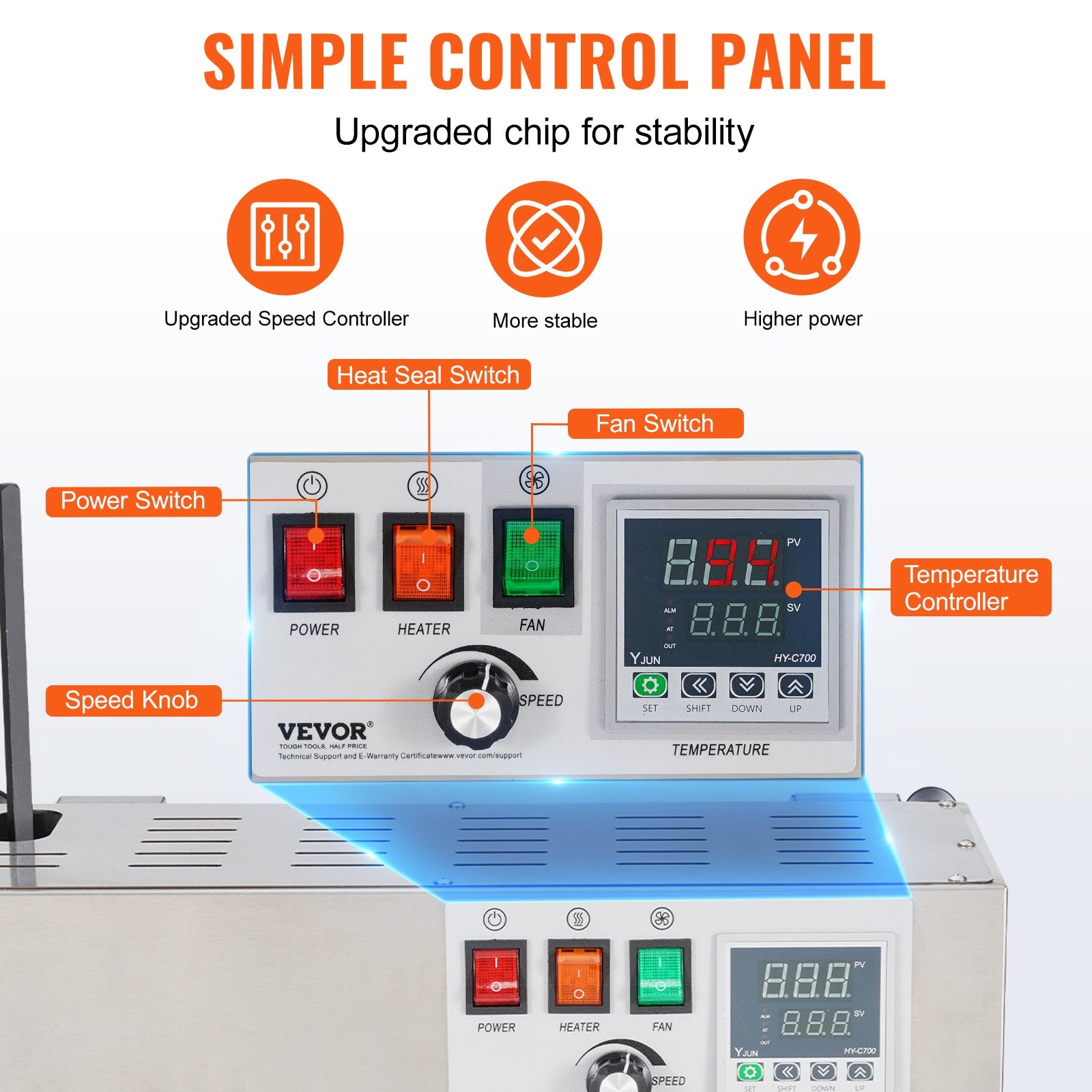 Schnelles Versiegeln: Unser Endlosband-Versiegelungsgerät zeichnet sich durch sein leistungsstarkes Design und hochwertige Materialien für eine stabile und effiziente Versiegelung aus. Mit 600 W Leistung und einer robusten Edelstahlkonstruktion gewährleistet es eine gleichbleibende Leistung ohne Korrosion oder Rost und sorgt so für langfristige Zuverlässigkeit.