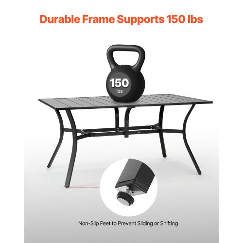 Matbord för utomhusbruk, 150 cm långt rektangulärt bistrobord i metall och stål för 4-6 personer, med 38 mm paraplyhål, vädertåliga stora möbler för gräsmatta, veranda, svart | EU