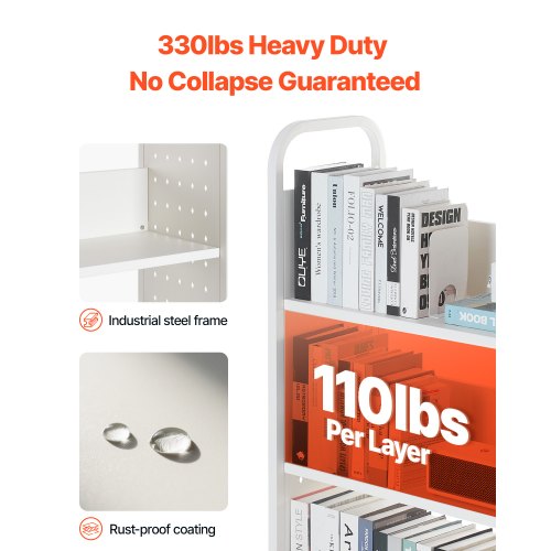 Stabile Tragfähigkeit: Der rollende Bücherwagen aus hochfestem Kohlenstoffstahl trägt pro Lage 50 kg und hat eine Gesamtkapazität von 150 kg. Die rostbeständige Beschichtung sorgt für Langlebigkeit, perfekt für schwere Bücher oder Geräte