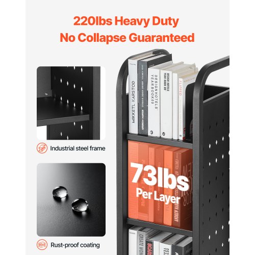 Stabile Tragfähigkeit: Der rollende Bücherwagen aus hochfestem Kohlenstoffstahl trägt pro Lage 33 kg und hat eine Gesamtkapazität von 100 kg. Die rostbeständige Beschichtung sorgt für Langlebigkeit, perfekt für schwere Bücher oder Geräte