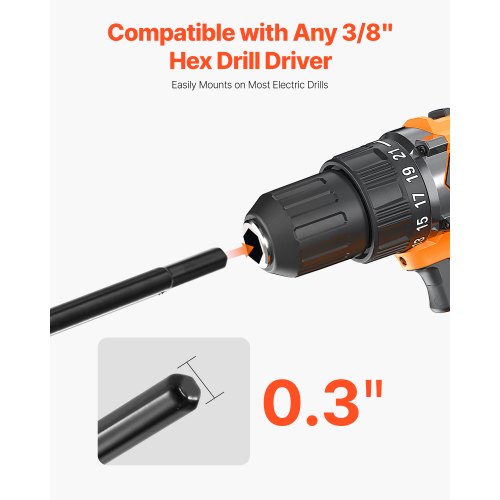 Breite Kompatibilität: Mit einem 3/8-Zoll-Sechskantschaft funktioniert dieser Spiralbohrer nahtlos mit den meisten Akku-Bohrmaschinen. Einfach anbringen, auslösen und die Bohrmaschine die Arbeit für Sie erledigen lassen!