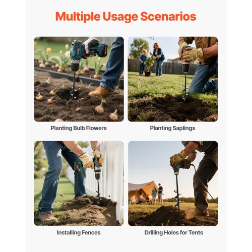 Multifunktionales Gartenwerkzeug: Der Pflanzbohrer eignet sich nicht nur für Blumenzwiebeln, Blumen und Gemüse, sondern auch hervorragend zum Bohren von Löchern für Zaunpfähle, Zelte oder Außendekorationen. Ein Muss für Garten-, Landschafts- und Heimwerkerprojekte.