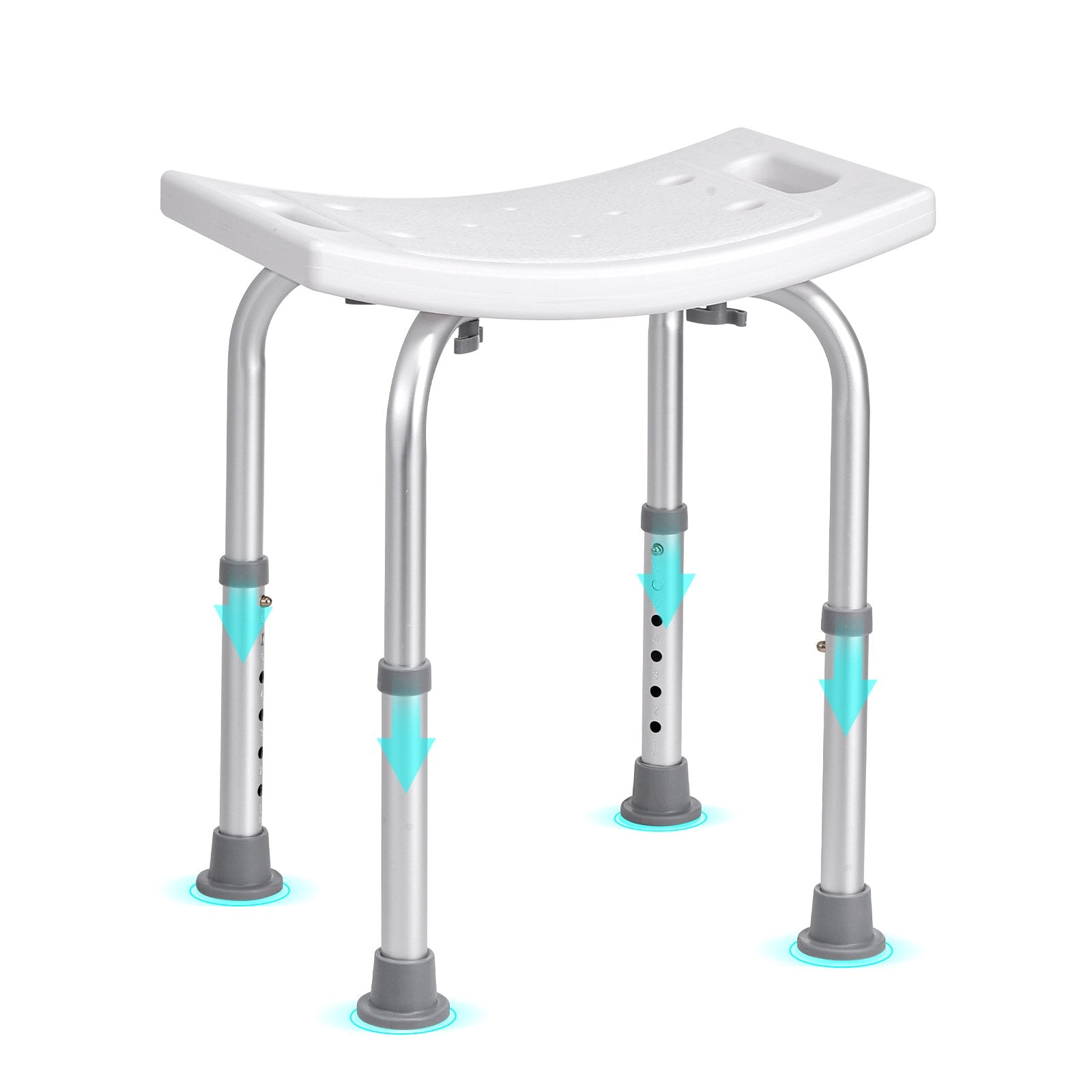 Stabile Struktur mit 158,8 kg Tragkraft: Hergestellt aus Polyethylen und einer industriellen Aluminiumlegierung mit 5 verstärkten Schrauben unter der Sitzfläche für zusätzlichen Halt, trägt unser Duschhocker bis zu 158,8 kg. Der Duschstuhl für den Innenbereich kombiniert eine rostfreie, korrosionsbeständige Struktur mit einem leichten Design und ist somit leicht zu tragen. Ideal für Senioren, Behinderte, Schwangere und Patienten nach Operationen.