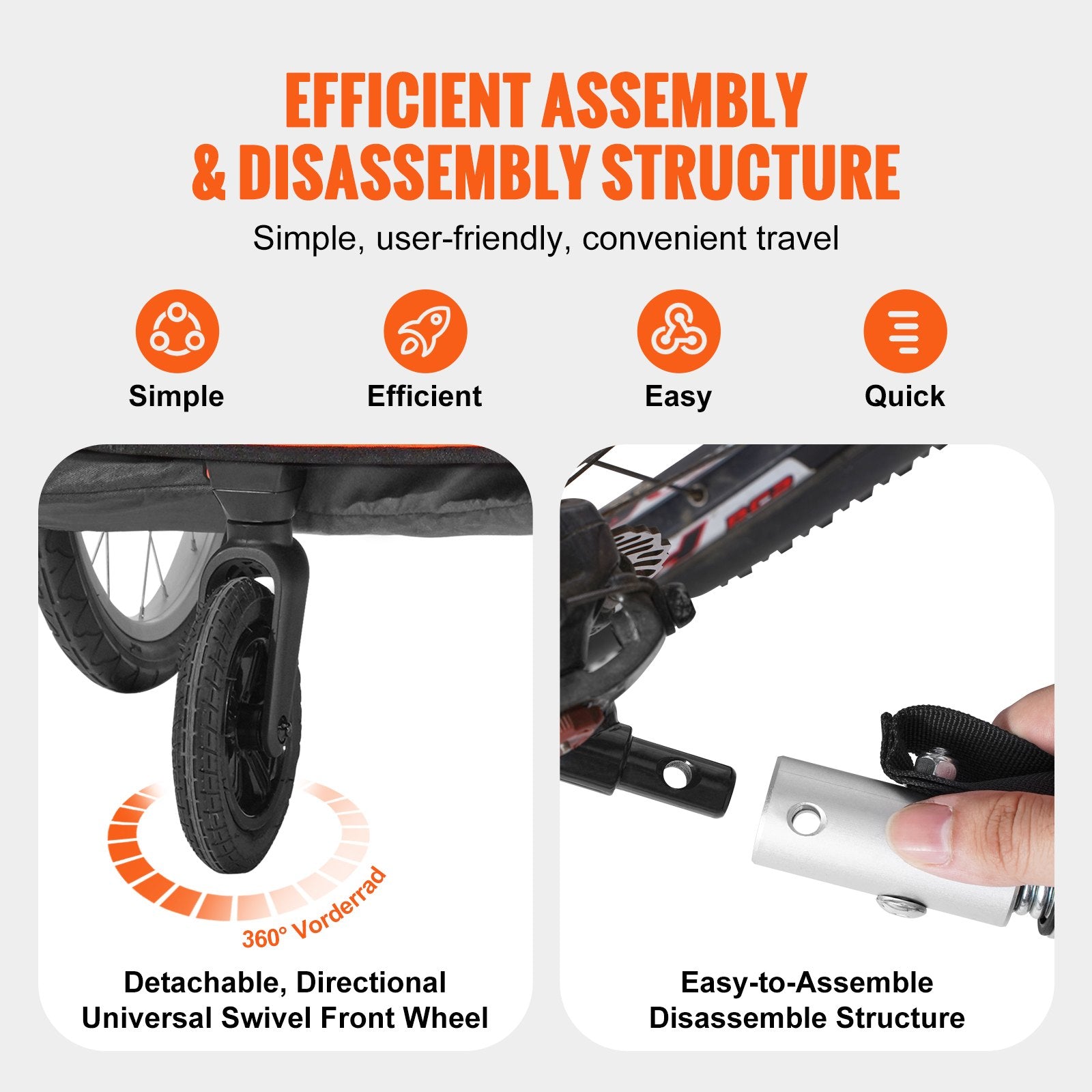 Einfach zu bedienen: Dank des Schnellverschluss-Designs unseres Kinderfahrradanhängers ist die Montage und Demontage kinderleicht. Das spart Zeit und Mühe und sorgt für eine komfortablere Fahrt. Schneller losfahren und stressfreie Abenteuer erleben.