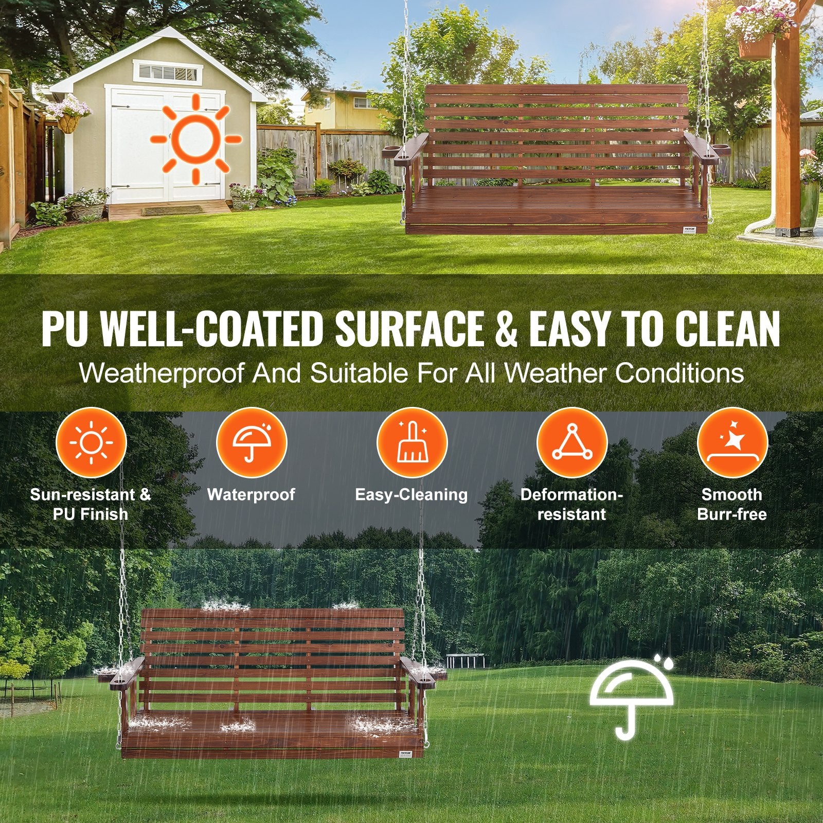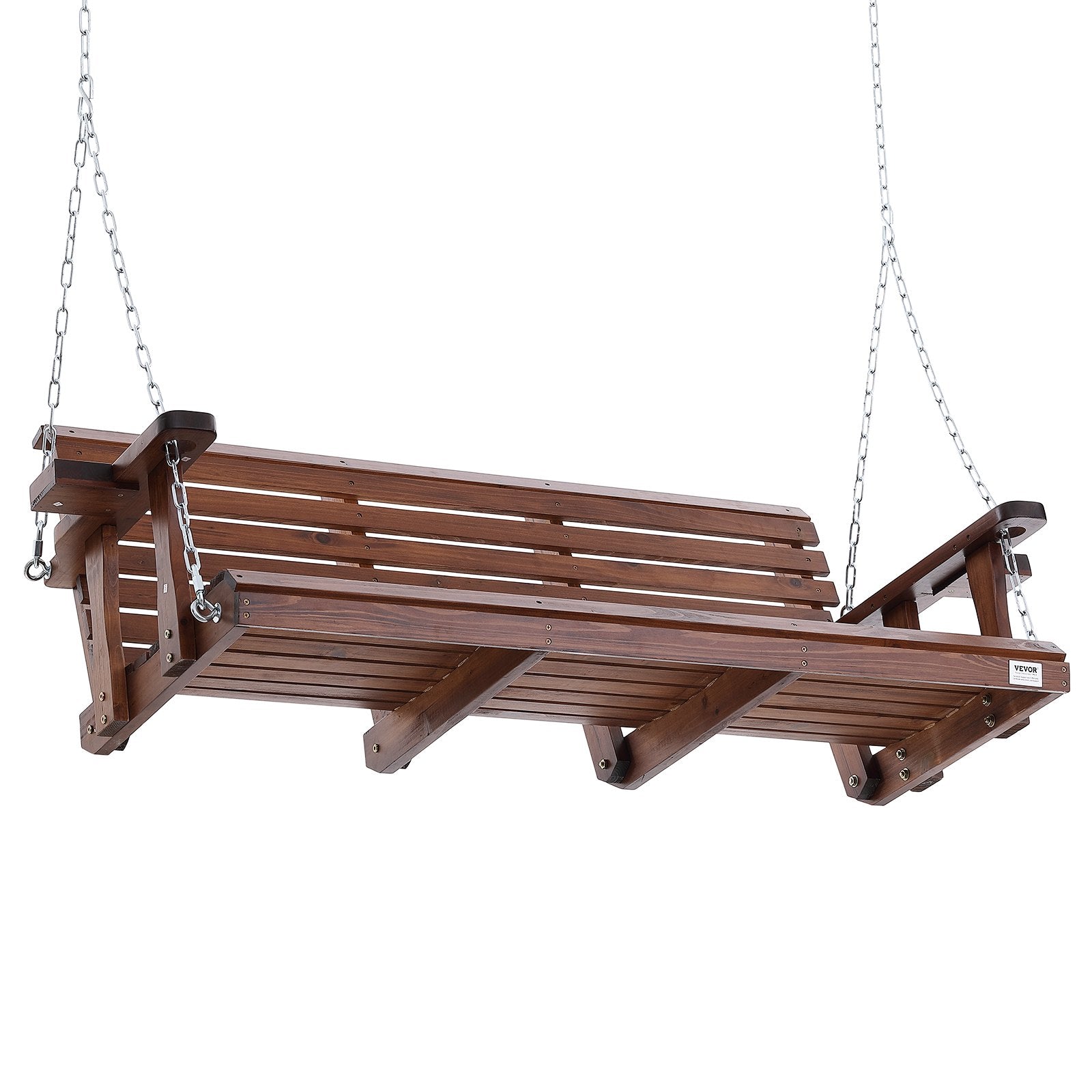 Holzschaukel für die Veranda, 1,77 m, Terrassenbankschaukel für Hof und Garten, verbesserte Tragkraft von 390 kg, robuste Schaukelstuhlbank mit Aufhängeketten für den Außenbereich, braun