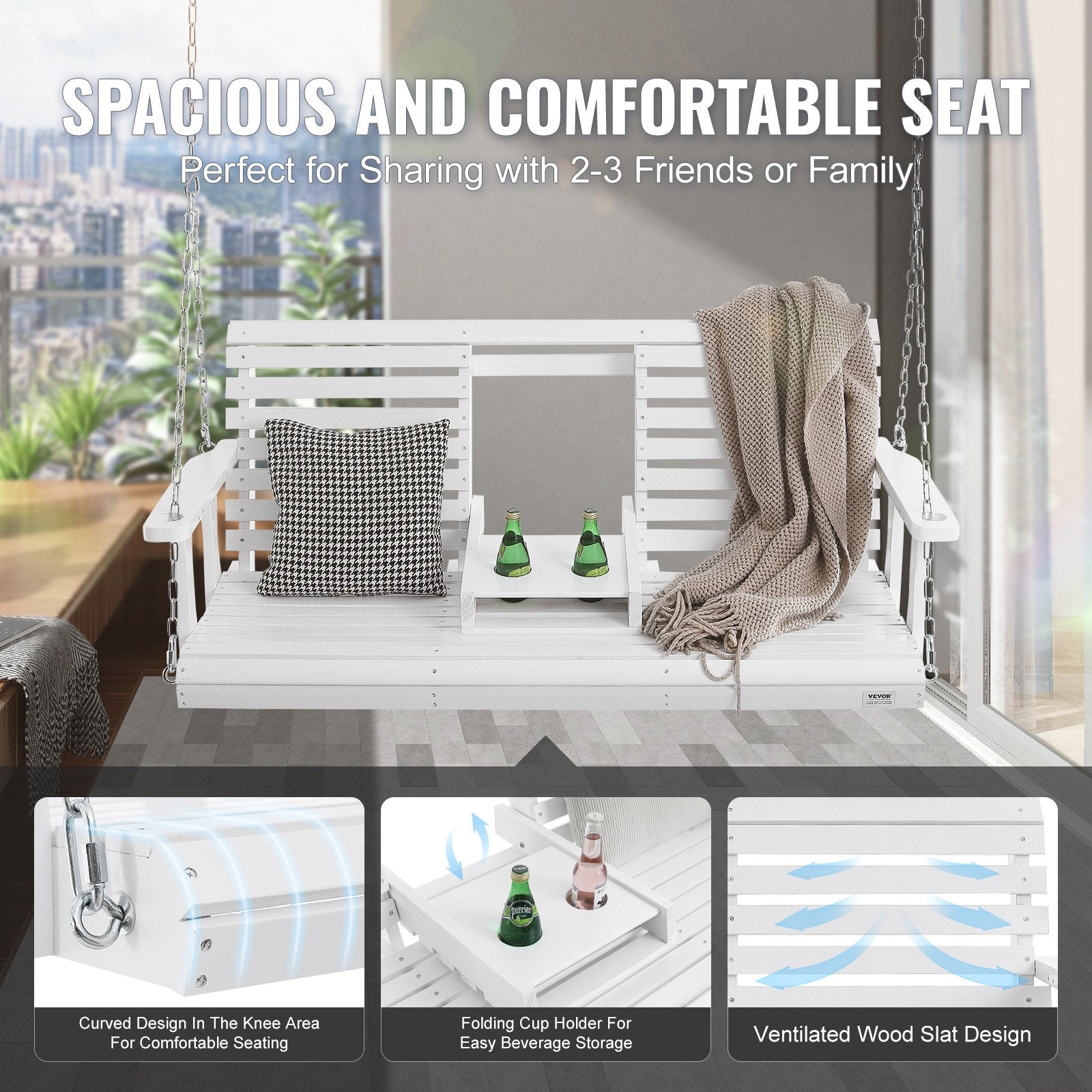 60" Veranda Schaukel Bank Holz hängen Outdoor Garten Terrasse Innenhof weiß