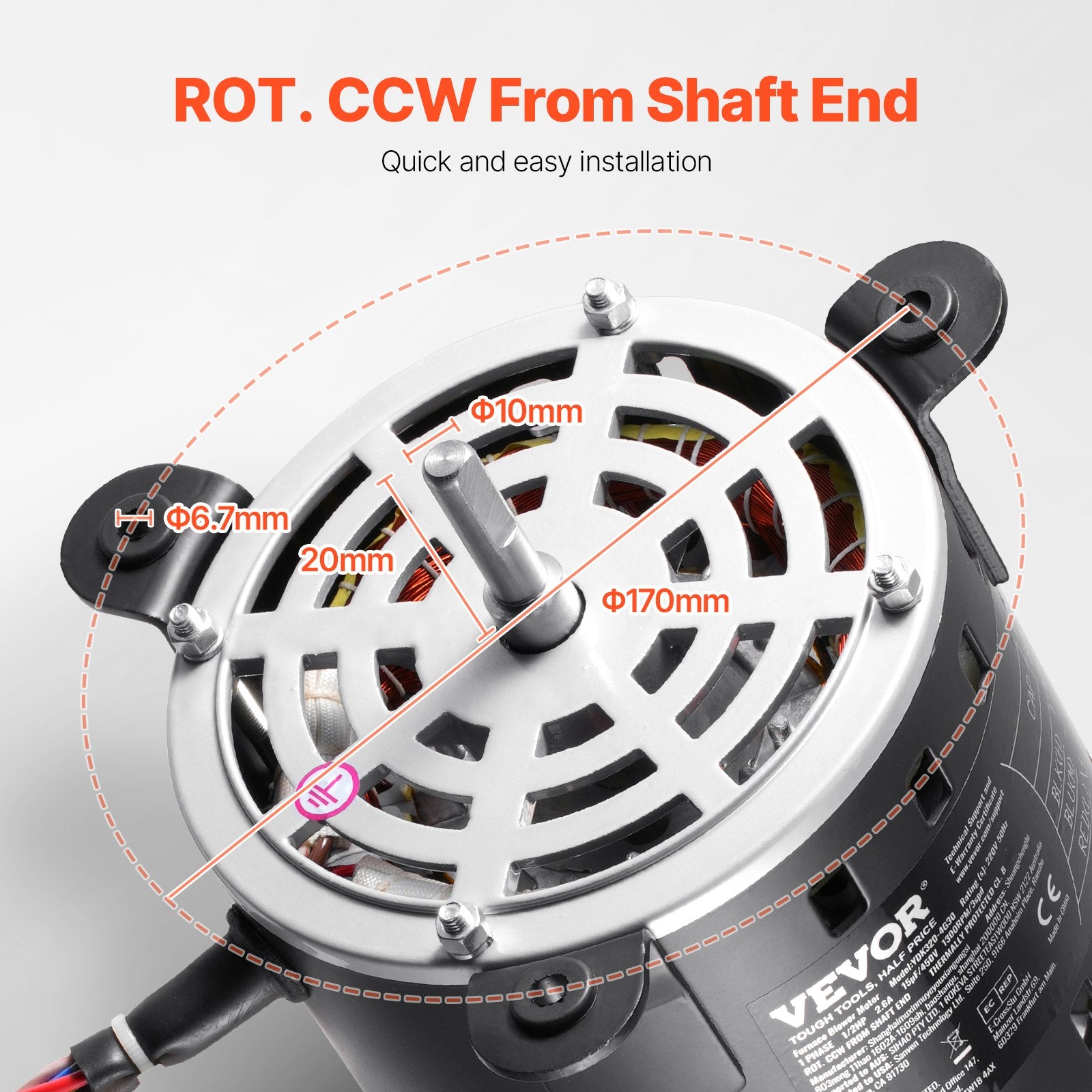 Einfache Installation: Dieser Ofenlüftermotor hat einen Wellendurchmesser von 10 mm (0,39 Zoll), eine Wellenlänge von 20 mm (0,78 Zoll) und einen Montagedurchmesser von Φ170 mm. Ausgestattet mit ROT. CCW vom Wellenende vereinfacht er die Kabelinstallation und ermöglicht schnelle Verbindungen.