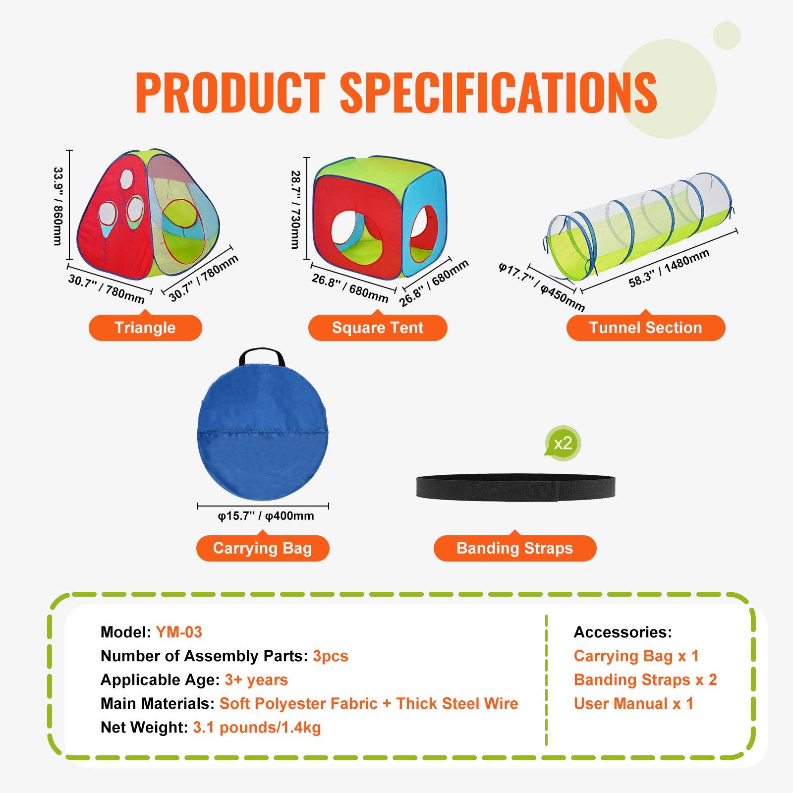 Sicheres und komfortables Material: Der Zelttunnel besteht aus weichem Polyestergewebe und einer stabilen Stahldrahthalterung und bietet Kindern eine komfortable und sichere Spielumgebung. Das Material ist reißfest und entspricht den CPSIA-Standards. Es hat die CPC-Zertifizierung bestanden und ist somit für Kinder sicher zum Spielen.