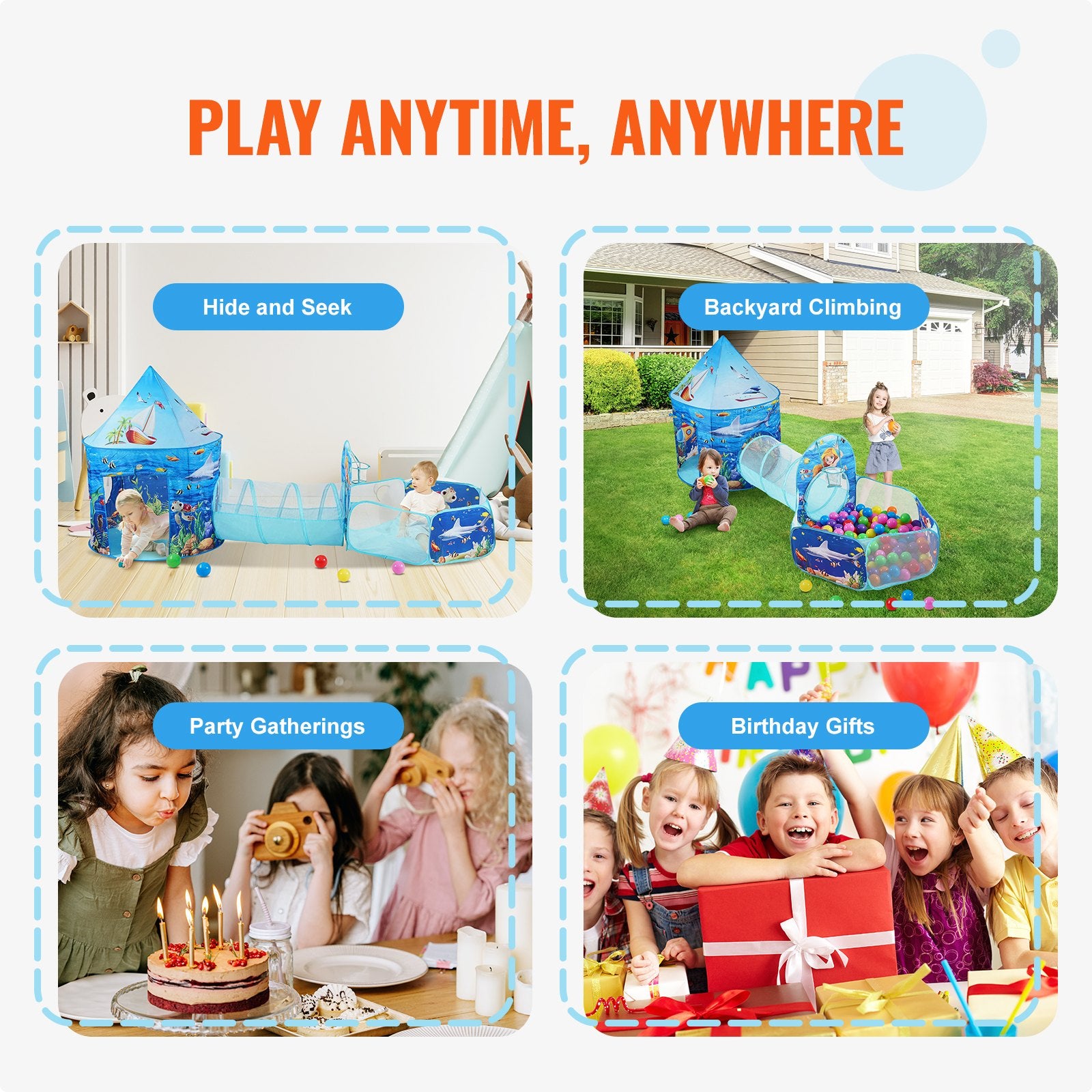 3-in-1-Spielzelt für Kinder mit Tunnel, Basketballkorb für Jungen, Mädchen, Babys und Kleinkinder, Pop-Up-Spielhaus für drinnen und draußen mit Tragetasche und Gurten, Geburtstagsgeschenke, Blue Ocean