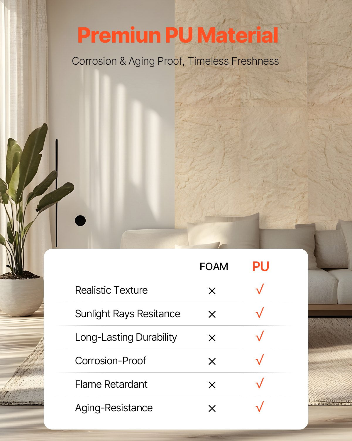 Langlebige PU-Konstruktion: Unsere strukturierten Wandpaneele bestehen aus hochwertigen PU-Platten, wodurch sie alterungsbeständig und flammhemmend sind. Diese realistischen und langlebigen Paneele eignen sich ideal für jede Ecke Ihres Zuhauses und bieten lang anhaltende Schönheit, ohne dass Sie sich um Abnutzung sorgen müssen.