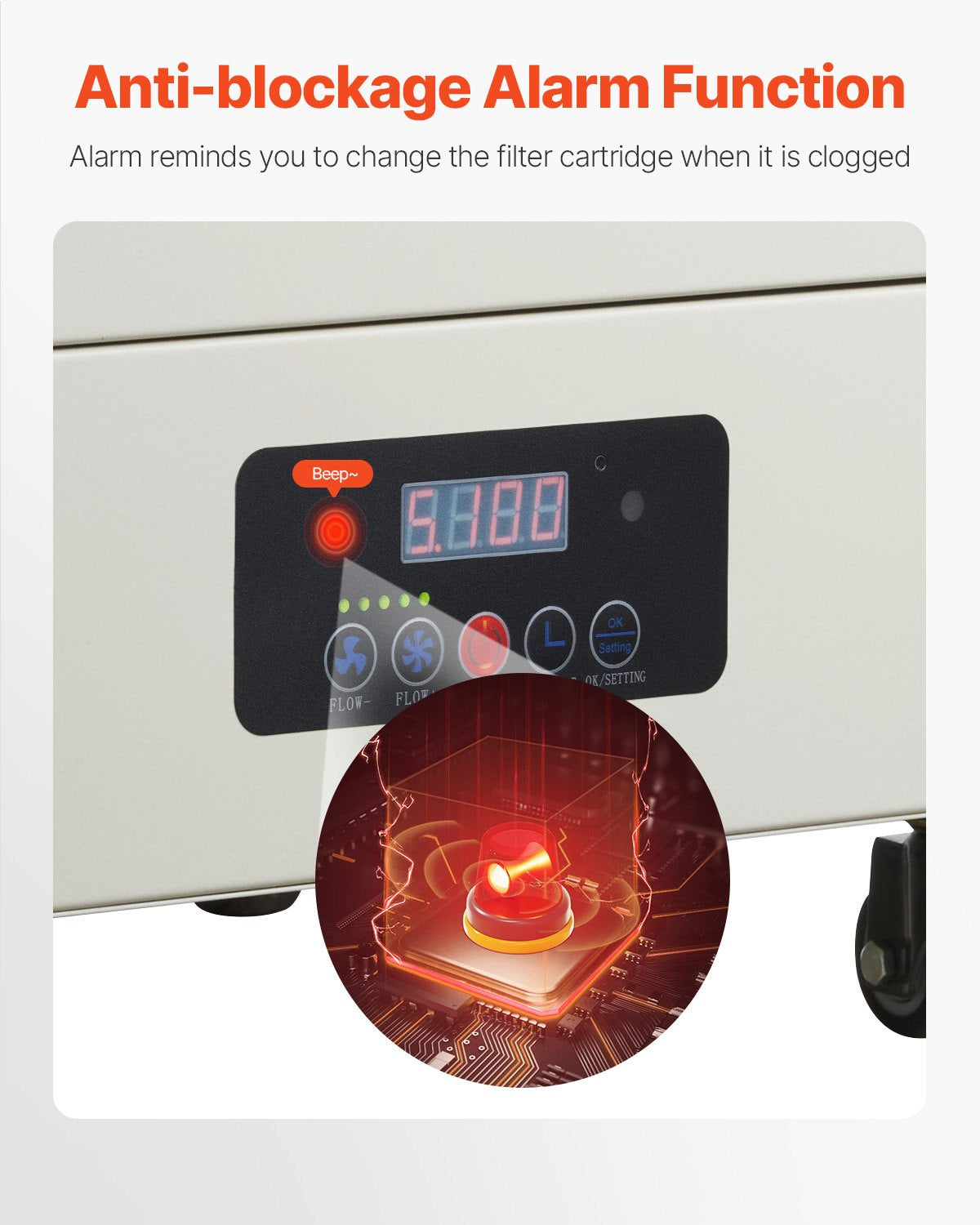 Intelligenter Filteralarm: Schluss mit dem Rätselraten beim Filterwechsel! Wenn das Filterelement gesättigt oder verstopft ist, gibt der Lötrauchabsauger akustische und optische Warnsignale aus und erinnert Sie daran, den Filter sofort auszutauschen. So vermeiden Sie das Einatmen schädlicher Dämpfe und schützen Ihre Gesundheit.