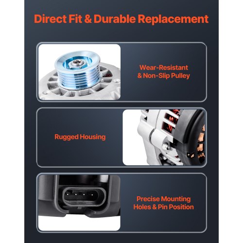 Stabile Leistung: Dieser Ersatzgenerator liefert eine effiziente 12-V-Gleichstromleistung zur Versorgung der Fahrzeugsysteme. Die 6-Rillen-Riemenscheibe sorgt für einen stabilen, schlupffreien Betrieb bis zu 6000 U/min – für einen reibungslosen Betrieb von Zündung, Beleuchtung und Infotainment.