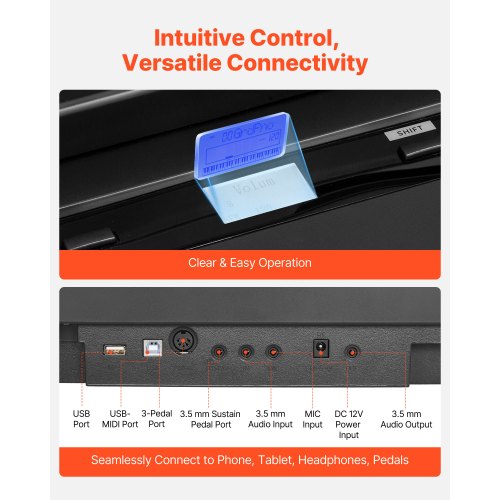 Elegant utseende: Detta pianoviktade tangentbord har ett modernt, minimalistiskt utseende med släta, rena linjer som passar sömlöst in i alla heminredningar. Det lyfter ditt vardagsrum eller musikhörna med en raffinerad konstnärlig touch.