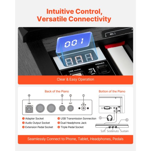 Dubbelt tangentbordsdesign: Det dubbla tangentbordsläget låter lärare visuellt vägleda och demonstrera tekniker. Detta klaviatur med 88 fullt viktade tangenter gör det möjligt för elever att direkt härma rytmer och färdigheter för snabbare framsteg.