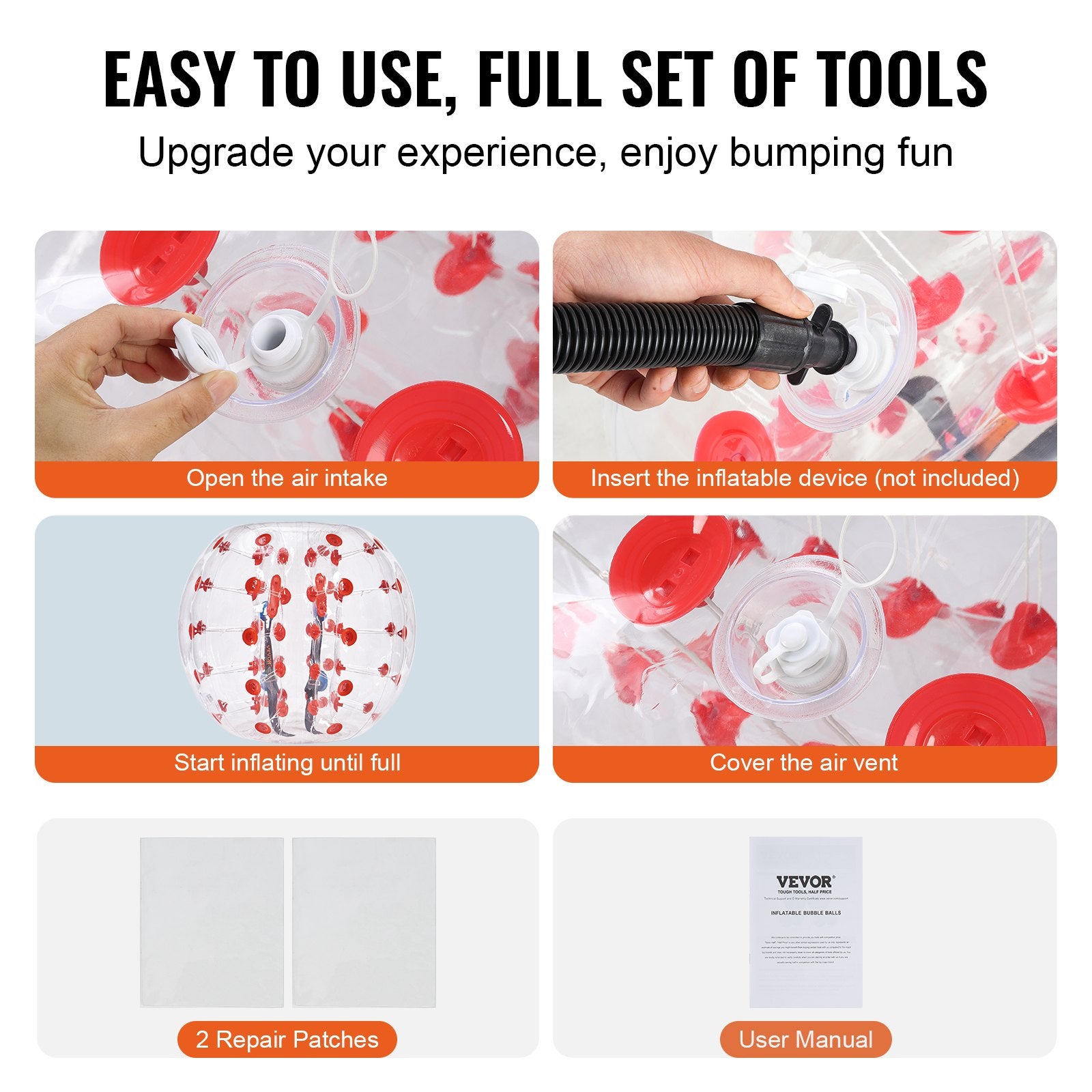 Hochwertiges Material, endloser Spaß: Tauchen Sie ein in endlosen Spaß mit dem aufblasbaren Bumper Ball von VEVOR! Diese Sumo-Bälle bestehen aus 0,8 mm dickem, explosionssicherem PVC und sind langlebig, sicher, wasserdicht und luftdicht. Hervorragende Reißfestigkeit, ein fortschrittliches Ventilsystem und eine dichte Versiegelung versprechen langanhaltenden Spaß.