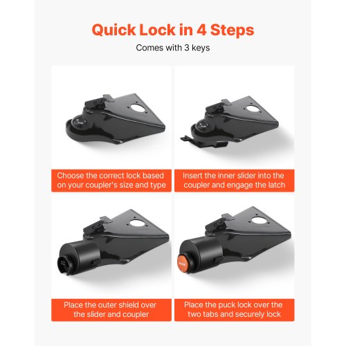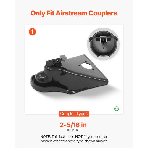 Passt zu Ihrer Kupplung: Dieses Kupplungsschloss passt auf 2-5/16" (58,6 mm) Flansch-Luftstromkupplungen und bietet Sicherheit für Ihr Wohnmobil oder Ihren Anhänger. Hinweis: Bitte prüfen Sie vor dem Kauf die Kupplungsgröße.