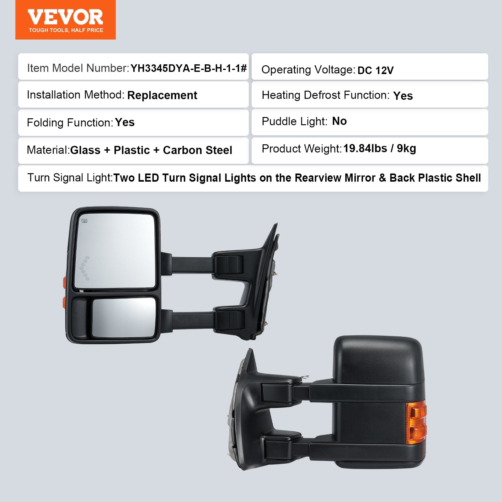 Verschiedene Lichtkonfigurationen: Erhellen Sie die Straße mit unseren Anhängerspiegel-Blinkern. Sie verbessern die Sichtbarkeit bei schlechten Lichtverhältnissen und verleihen Ihrem Fahrzeug mehr Agilität. Hergestellt aus Industriekunststoff und Kohlenstoffstahl, sind sie für unzählige Abenteuer ausgelegt.