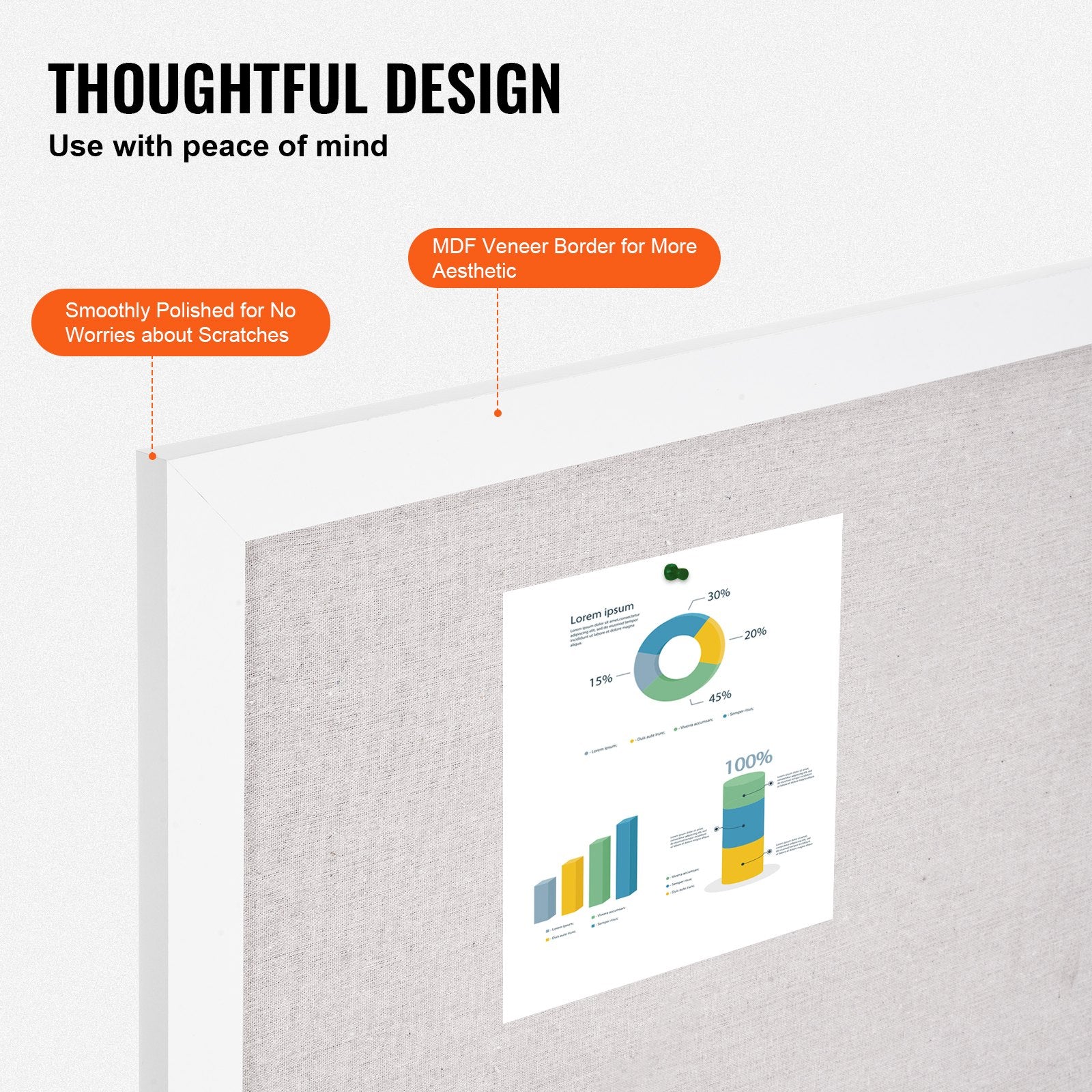 Verbesserte Leinenoberfläche: Unsere Pinnwand verfügt über eine weiße Polyester-Baumwoll-Oberfläche mit einem 7 mm dicken Faserplattenkern. Sie ist so konzipiert, dass sie auch bei längerem Gebrauch unschöne Löcher vermeidet. Die Oberfläche ist mit Klebe- und Pressplatten verstärkt, was ein Ausbeulen verhindert und eine sichere und stabile Befestigung gewährleistet.