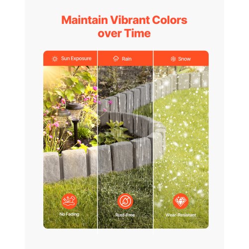 Robust für den Außenbereich: Diese Beeteinfassungen aus Kunststein bestehen aus hochwertigem rotationsgeformtem PE-Kunststoff und sind beständig gegen Ausbleichen, Rost und Korrosion. Die strukturierte Oberfläche imitiert Naturstein und bietet hervorragenden Schutz vor Regen, Schnee und Sonnenlicht. Die ausgehöhlte Bodenabdeckung verhindert ein Einsinken in weichen Boden.