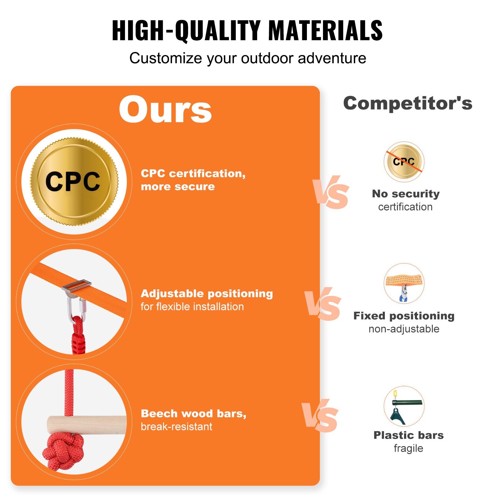 2x65 Fuß Ninja Warrior Hindernisparcours für Kinder Outdoor Slackline 12 Hindernisse
