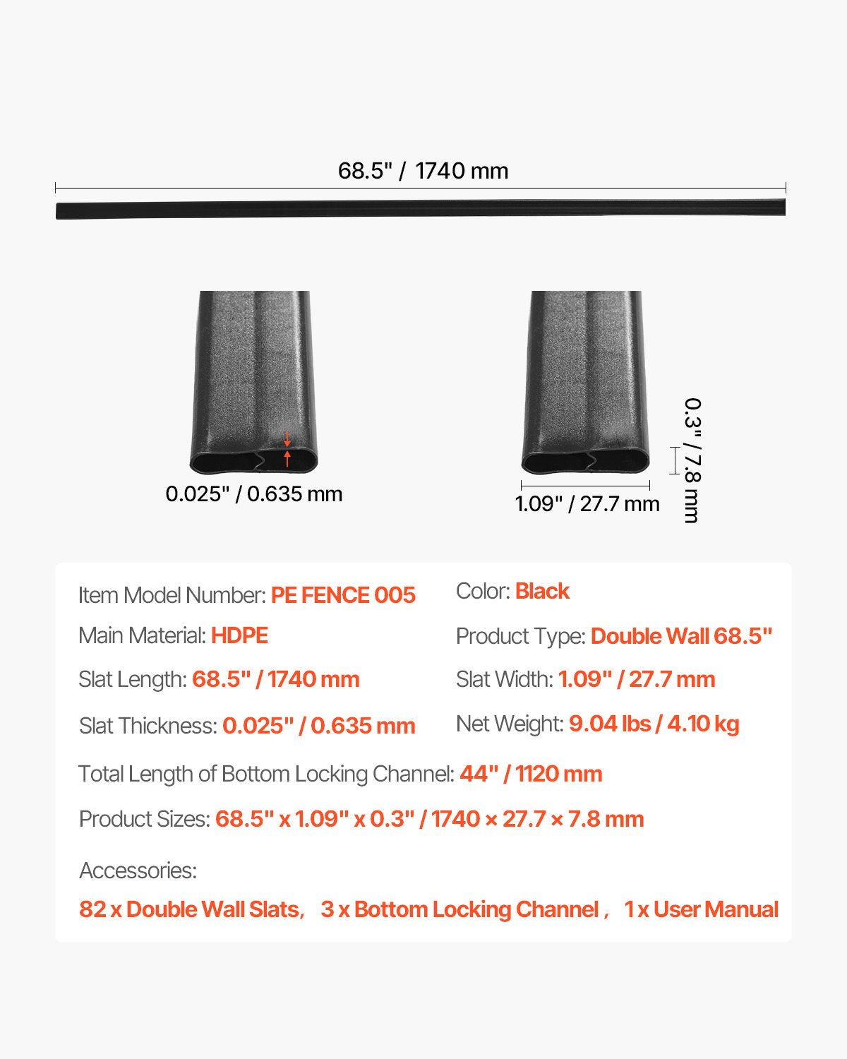 Doppelwandige Sichtschutzlamellen: Diese Sichtschutzwände mit Bodenverriegelung wurden speziell für 15 cm hohe Zäune entwickelt und sind etwa 173 cm lang. Dadurch ist eine ideale Passform gewährleistet und verhindert, dass die Lamellen über die Oberseite des Zauns hinausragen.