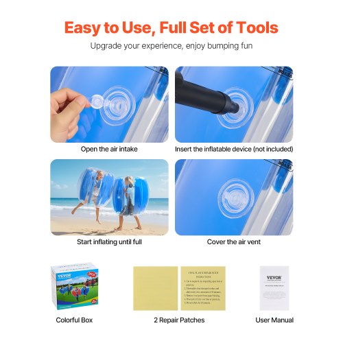 Durchdachtes Wartungsset: Wird mit einem benutzerfreundlichen Reparaturset geliefert, inklusive Anleitung, 2 Flicken und einer Schritt-für-Schritt-Anleitung. Jeder Flicken kann 1–3 kleine Löcher reparieren. Langlebig und sorgt für jahrelangen Spielspaß. Hinweis: Dieser Hamster-Bubbleball wird ohne Luftpumpe geliefert.