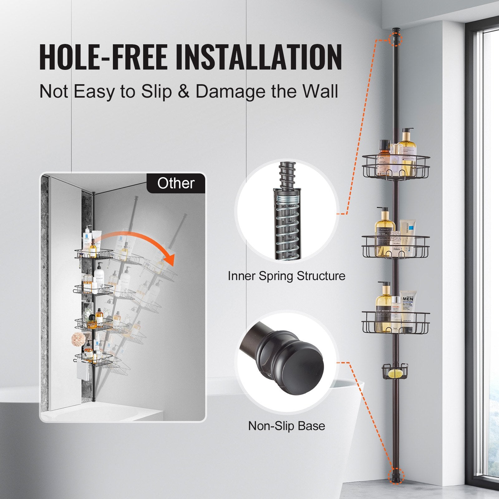 Große Kapazität: Die Eckspannstange für die Dusche ist sorgfältig mit 3 geräumigen großen Ablagen und 1 Seifenhalter ausgestattet und bietet ausreichend Stauraum für Ihr Badezimmer. Gleichzeitig verhindert das erhöhte Geländerdesign effektiv das versehentliche Herunterfallen von Gegenständen und sorgt so für Sicherheit und Komfort bei der Nutzung.