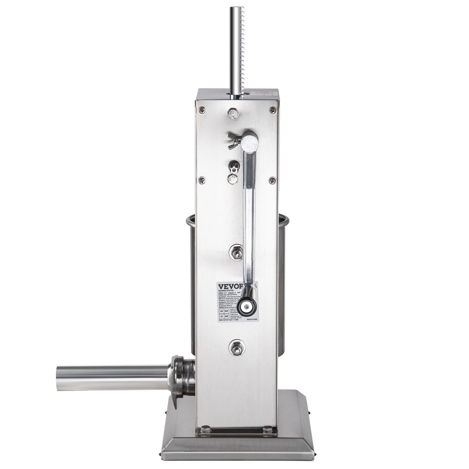 Manueller Wurstfüller, 5 Pfund/3 l Fassungsvermögen, vertikaler Wurstfüller aus Edelstahl 304 mit zwei Geschwindigkeiten, Wurstfüllmaschine mit 4 Füllrohren, Saugfuß für den privaten oder gewerblichen Gebrauch