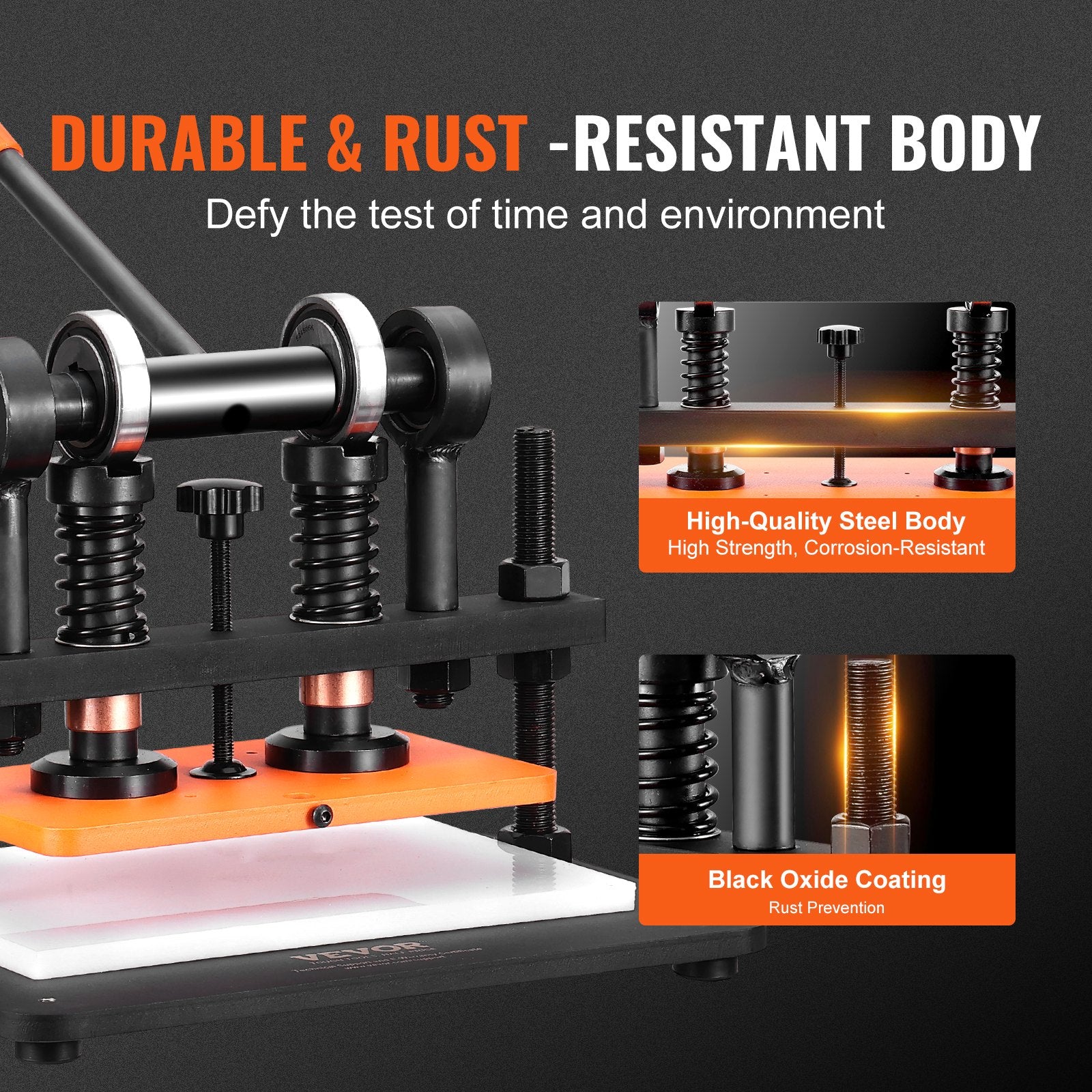 Langlebig: Unsere Stanzmaschine ist aus hochwertigem Stahl gefertigt und für eine lange Lebensdauer mit einer schwarzen Oxidbeschichtung versehen. Sie ist rost- und korrosionsbeständig und hält daher auch rauen Umgebungen problemlos stand.