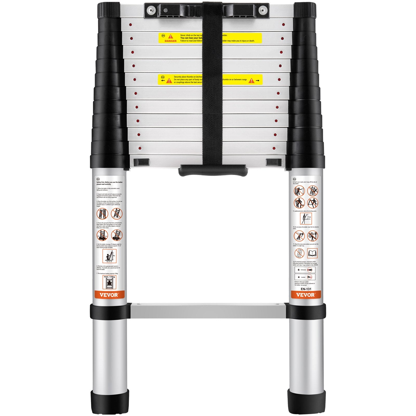 Überragende Tragfähigkeit: Die VEVOR-Teleskopleiter ist professionell aus einer Aluminiumlegierung in Flugzeugqualität gefertigt und hat eine maximale Tragfähigkeit von 170 kg. Die Kunststoff-Schnittstellenkomponenten sind mit Nylon verstärkt, wodurch sie bruchsicher sind und keine Kunststoffspuren hinterlassen. Darüber hinaus hat sie die ANSI- und N131-Tests bestanden und gewährleistet so eine lange Lebensdauer. Machen Sie sich bereit für neue Höhen!