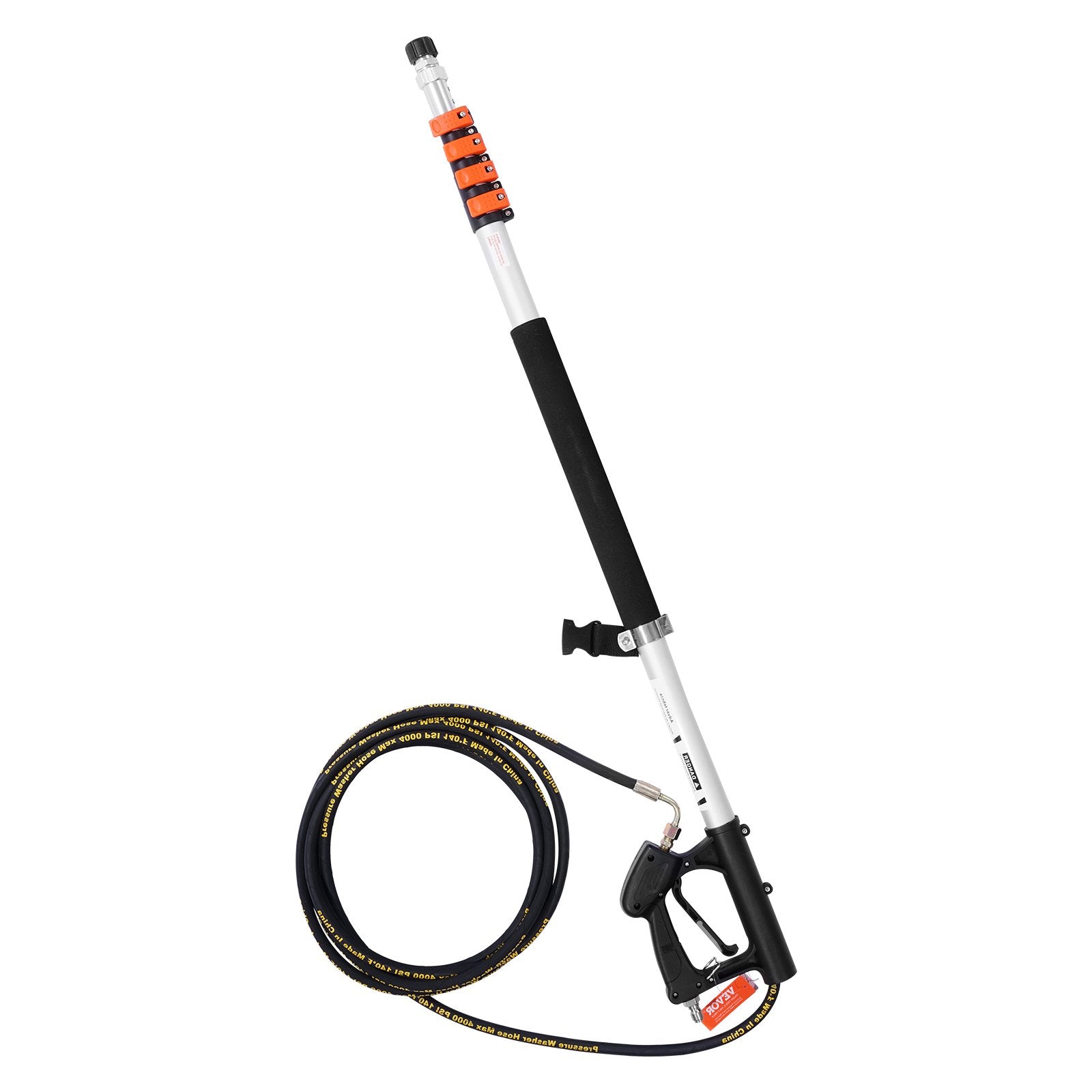 Professionelles Werkzeug: Unser Teleskop-Hochdruckreiniger entfernt mühelos Schmutz aus Höhen von 1,5 bis 5,5 Metern. Ausgestattet mit 4 Teleskop-Verstellsperren können Sie den Strahl auf die gewünschte Länge einstellen, um hohe Dachrinnen, Wände, Säulen, Fenster und mehr mühelos zu reinigen.