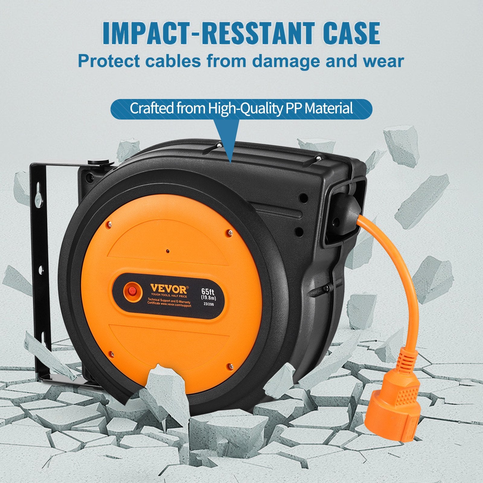Robuste 19-m-Kabeltrommel: Unsere einziehbare Verlängerungskabeltrommel mit H05VV-F 3G2,5 mm² Kabel ist für härteste Aufgaben ausgelegt und bleibt auch bei niedrigen Temperaturen flexibel. Sie verfügt über ein hochwertiges PP-Gehäuse, ein 19 Meter langes Verlängerungskabel, ein 1 Meter langes Starterkabel und eine maximale Belastbarkeit von 1600 W – für die nötige Leistung und Reichweite für jedes Projekt.