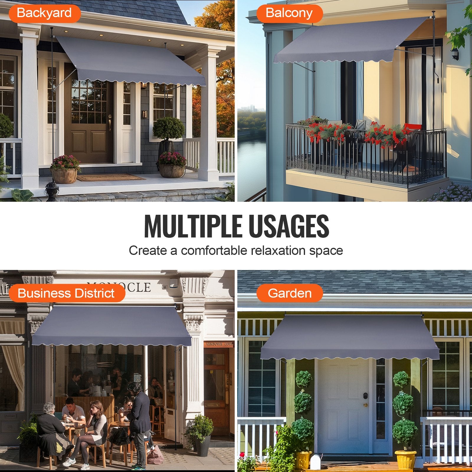 Vielseitige Einsatzmöglichkeiten: Ideal für Gärten, Balkone und Terrassen bieten diese Terrassenmarkisen stilvollen Sonnenschutz und Komfort und verwandeln Ihren Außenbereich in eine entspannende Oase.