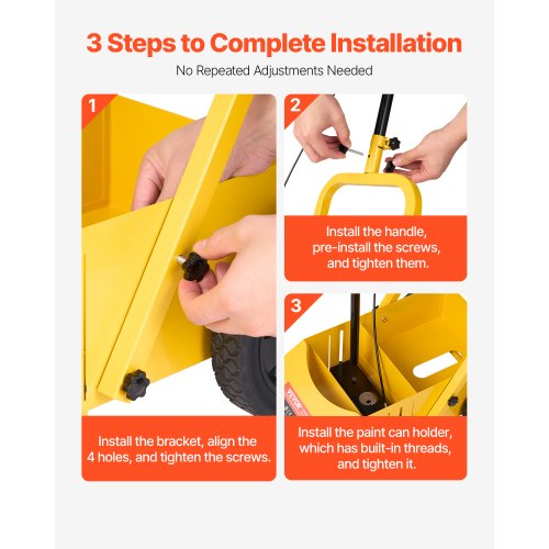 Linjemarkeringsmaskin, 610 x 330 x 900 mm, 4-hjulig, kraftig linjemarkeringsmaskin med 56-102 mm justerbar bredd, skapar tydliga kantlinjer för vägar, parkeringsplatser, idrottsplaner, gul | EU