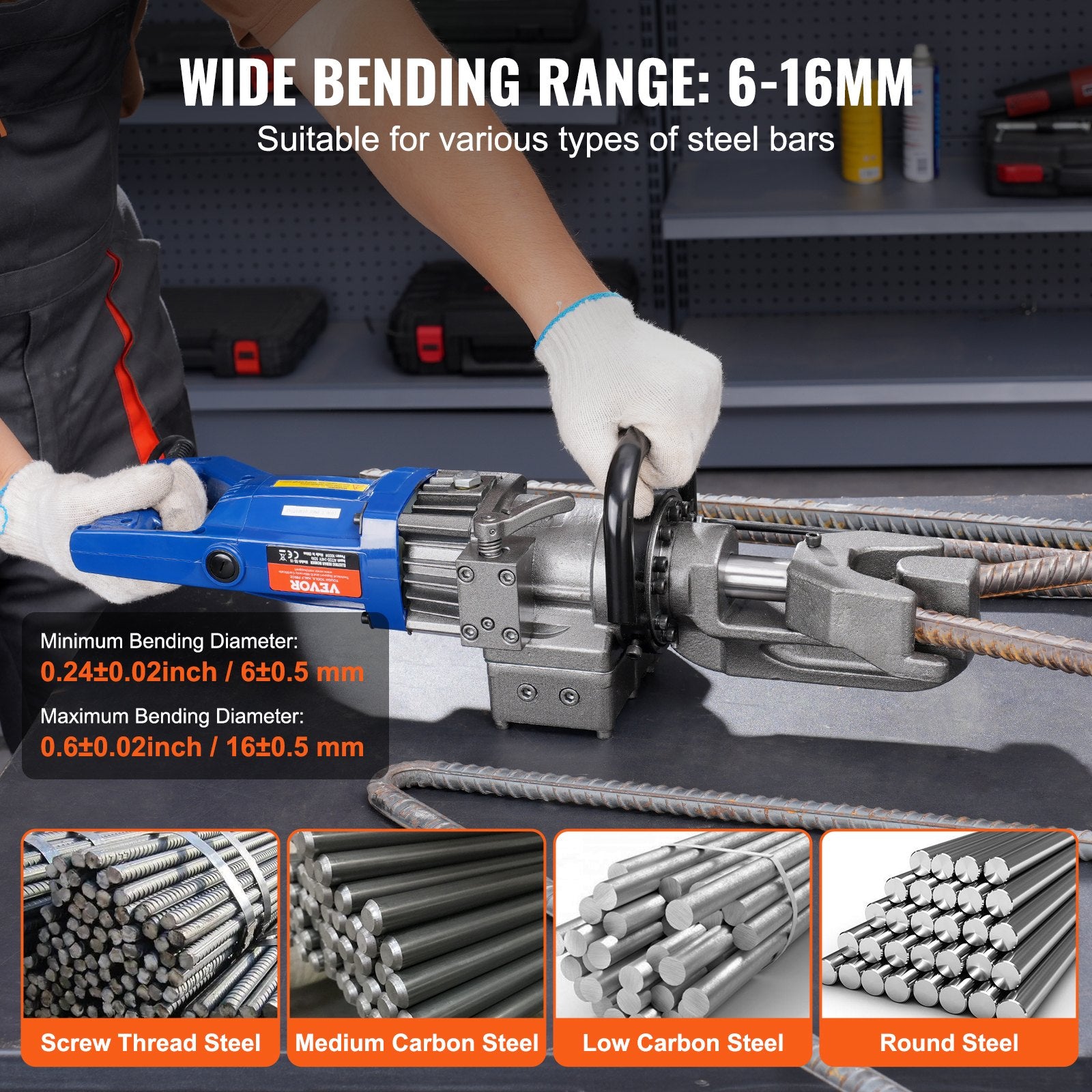 1000 W elektrischer hydraulischer Bewehrungsbieger für bis zu 5/8 Zoll #5 (6-16 mm) Bewehrungsstahl