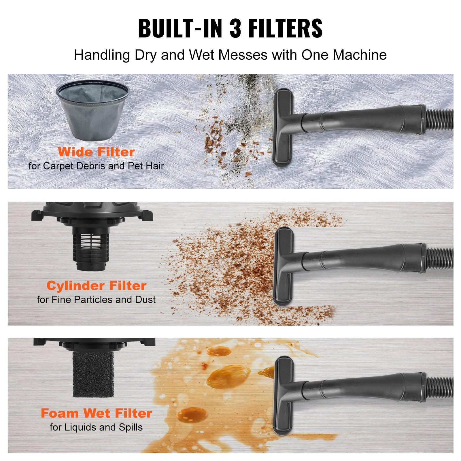 Sauberere Luft, weniger Aufwand: VEVOR-Staubsauger für kleine Werkstätten verwenden einen wiederverwendbaren und waschbaren Stofffilter sowie einen Schaumstofffilter für Nass- und Trockensauger. Der verbesserte Stofffilter ist besser als herkömmliche Filter, die leicht reißen. Er lässt sich leicht montieren und demontieren. Der fortschrittliche Filter fängt den Großteil des Schmutzes ein und schützt Ihre Familie vor verschmutzter Luft.