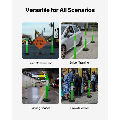 Flexibel och portabel: Våra trafikavgränsare har en pilformad topp och en portabel basdesign, vilket gör dem enkla att transportera och använda. Den åttkantiga gummibasen är tillräckligt tung för att bibehålla stabilitet, även om den av misstag välts, vilket säkerställer pålitlig prestanda.