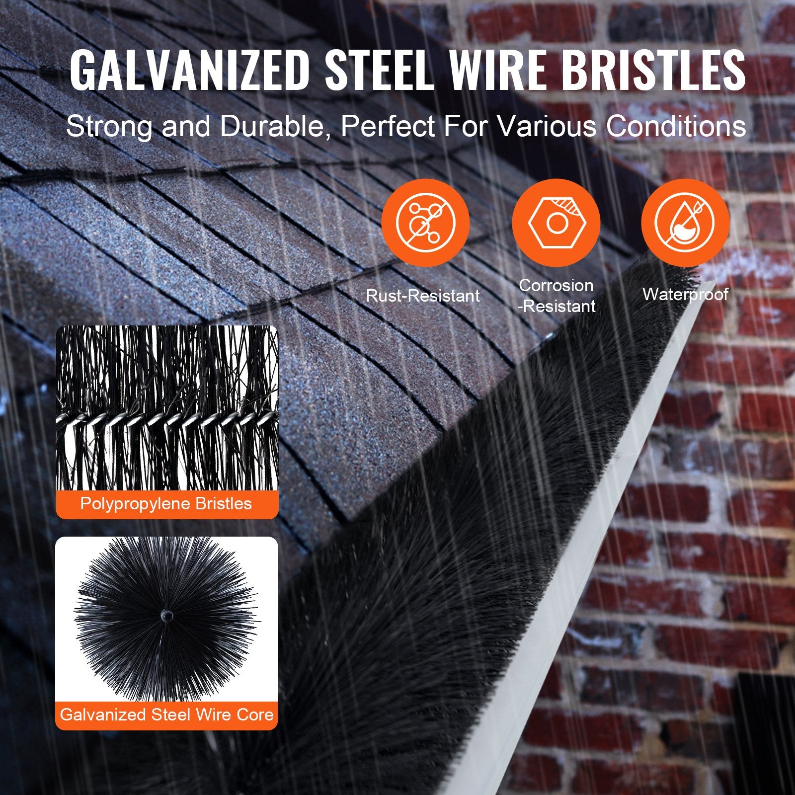 Ganzjähriger Dachrinnenschutz für alle Klimazonen: Die Dachrinnenbürste besteht aus professionellen Polypropylenborsten und einem Kern aus hochbelastbarem verzinktem Stahldraht und widersteht verschiedenen Naturelementen, ohne zu rosten oder zu korrodieren, unabhängig von Jahreszeit und Klima.