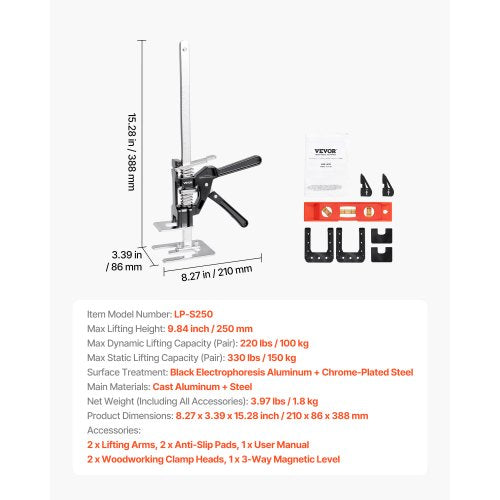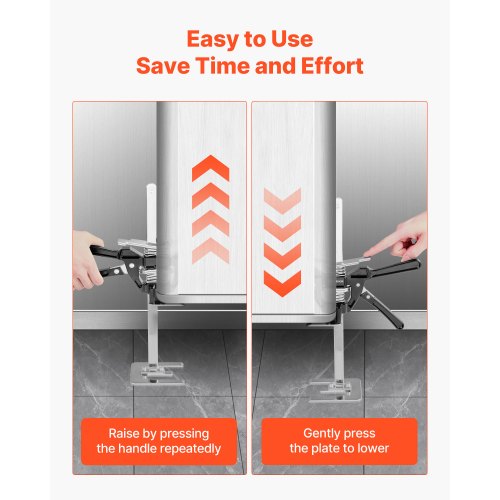 Schnell und einfach zu bedienen: Drücken Sie den Griff, um schwere Gegenstände anzuheben, und drücken Sie sanft auf die Platte, um sie abzusenken. Mit einem Gewicht von nur 1,9 kg lässt er sich leicht zur Arbeitsstelle tragen. So kann eine Person Aufgaben erledigen, die eigentlich für zwei Personen gedacht sind. Das macht die Arbeit schneller und effizienter.