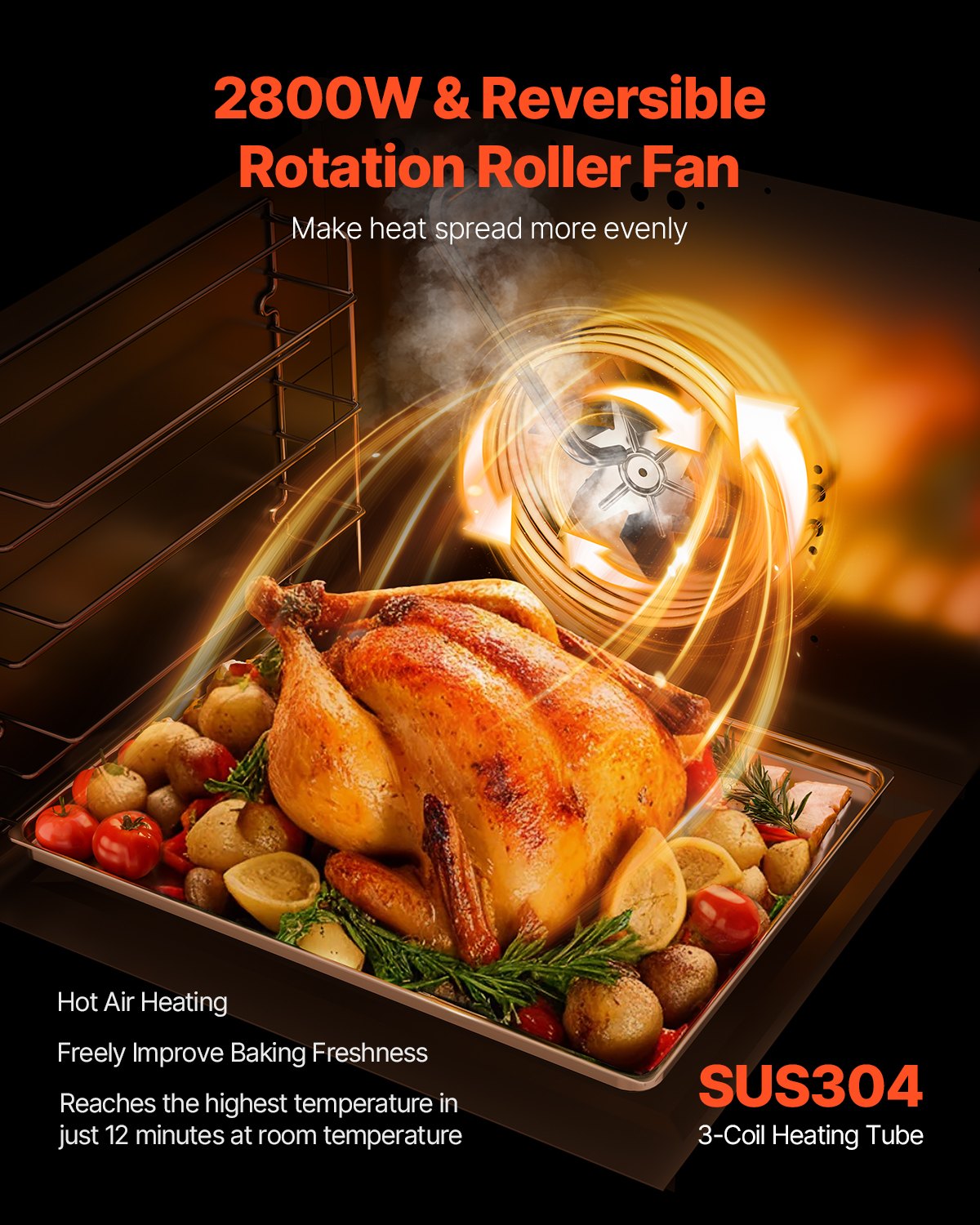 Komplettes Zubehör: Im Lieferumfang sind eine Bedienungsanleitung, 4 Roste, 1 Lebensmitteltablett, 1 Klemme und ein Paar hitzebeständige Handschuhe enthalten. Sofort einsatzbereit für die einfache und schnelle Zubereitung von Pizza, Brot, Muffins, Gebäck, Keksen, Pommes, Hühnchen und mehr.