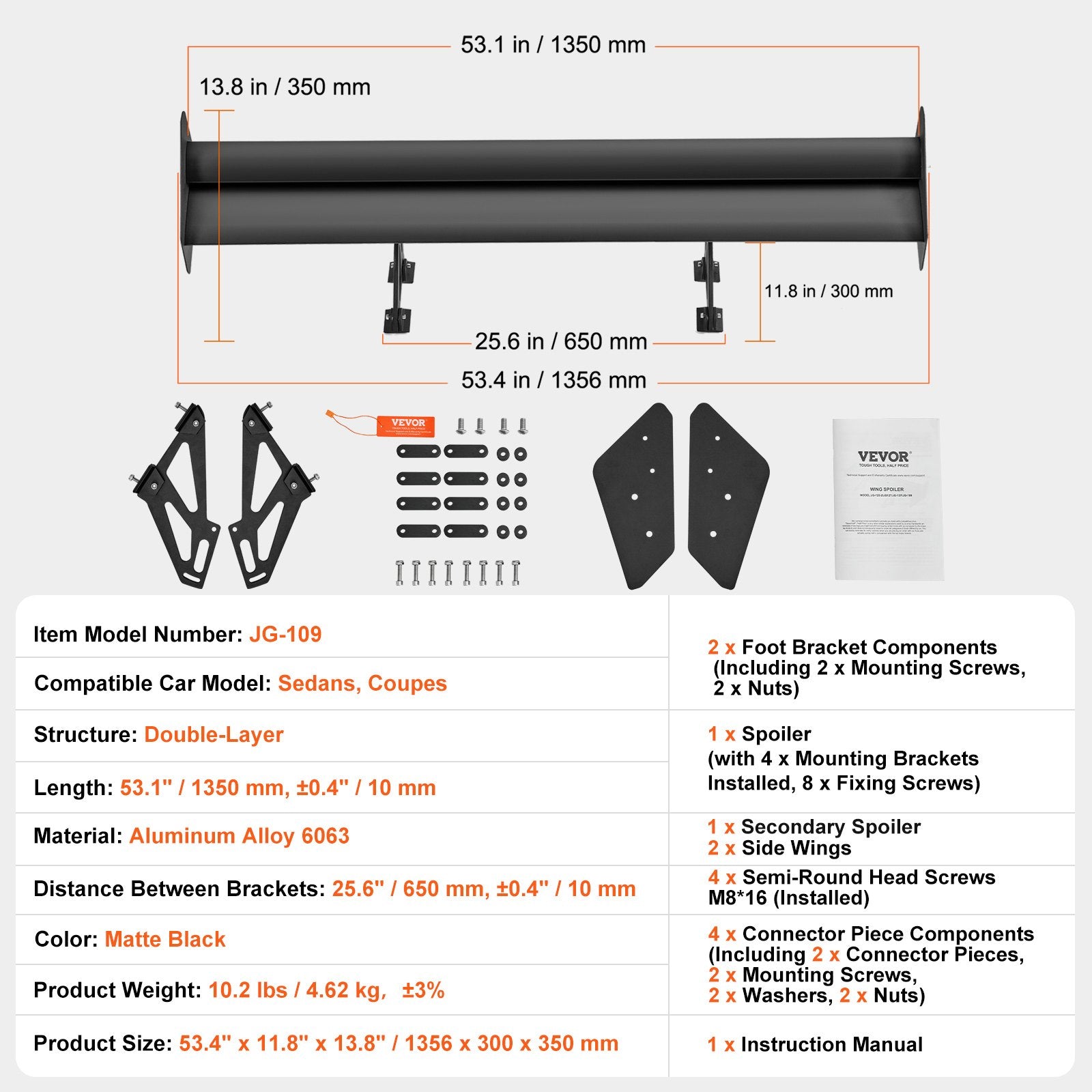 Universalspoiler: Unser Heckspoiler ist mit den meisten Limousinen und Coupés kompatibel. Er hat eine Standard-Spoilerlänge von 1350 mm und einen Abstand von 650 mm zwischen den beiden Halterungen. Sie müssen sich keine Sorgen machen, dass dieser Spoiler nicht zu Ihrem geliebten Auto passt. Das doppellagige Design eignet sich besser für Hochleistungsfahrzeuge oder Rennfahrzeuge.