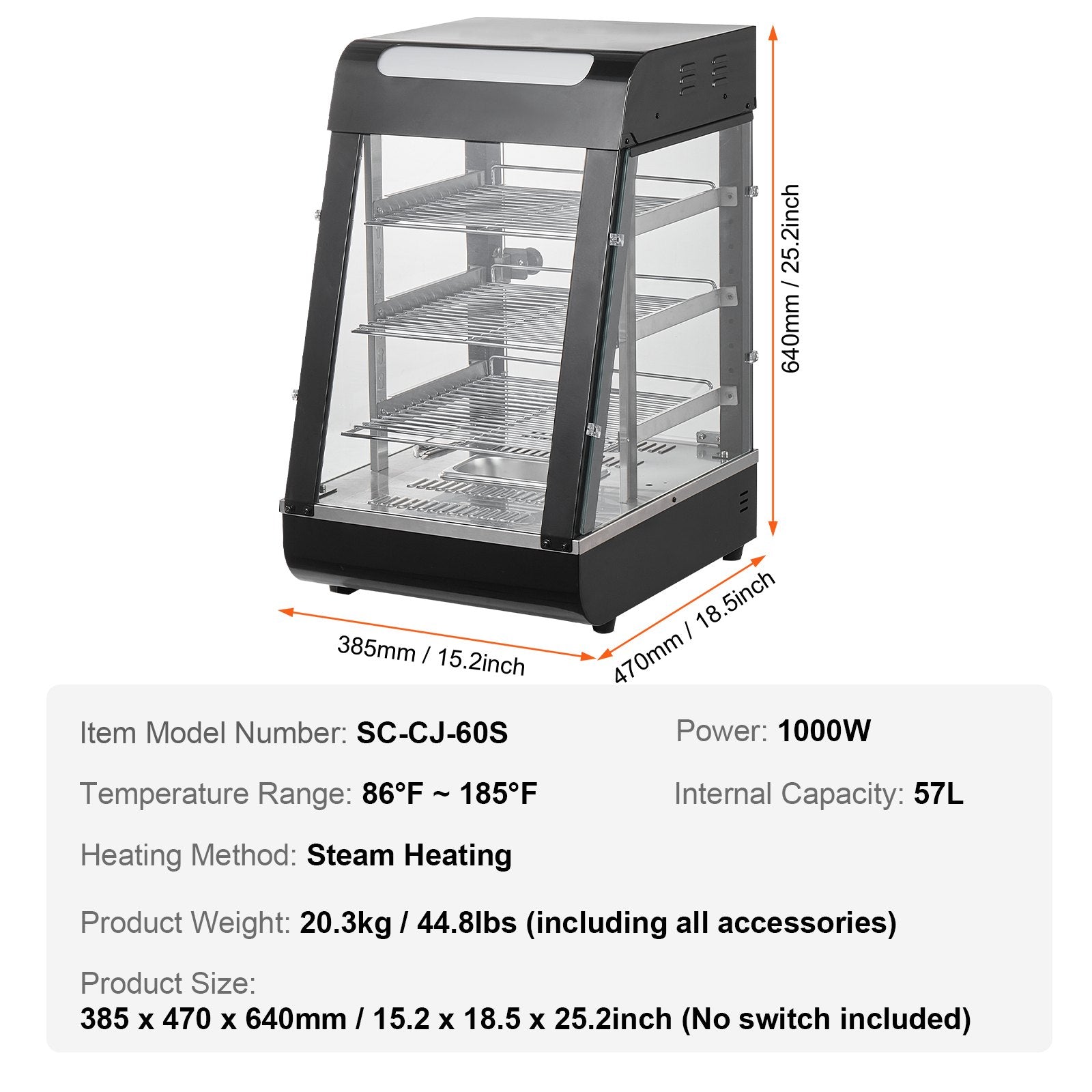 3-stöckig, großer Raum: Abmessungen: 385 x 470 x 640 mm. Unser Theken-Präsentationsständer verfügt über 3 geräumige, lebensmittelechte Ablagen, auf denen Sie Lebensmittel unterschiedlicher Größe frei platzieren können. Er eignet sich ideal zum Aufbewahren von Pizza, Eierkuchen, Brathähnchen oder Hamburgern und sorgt dafür, dass die Lebensmittel lange frisch bleiben.
