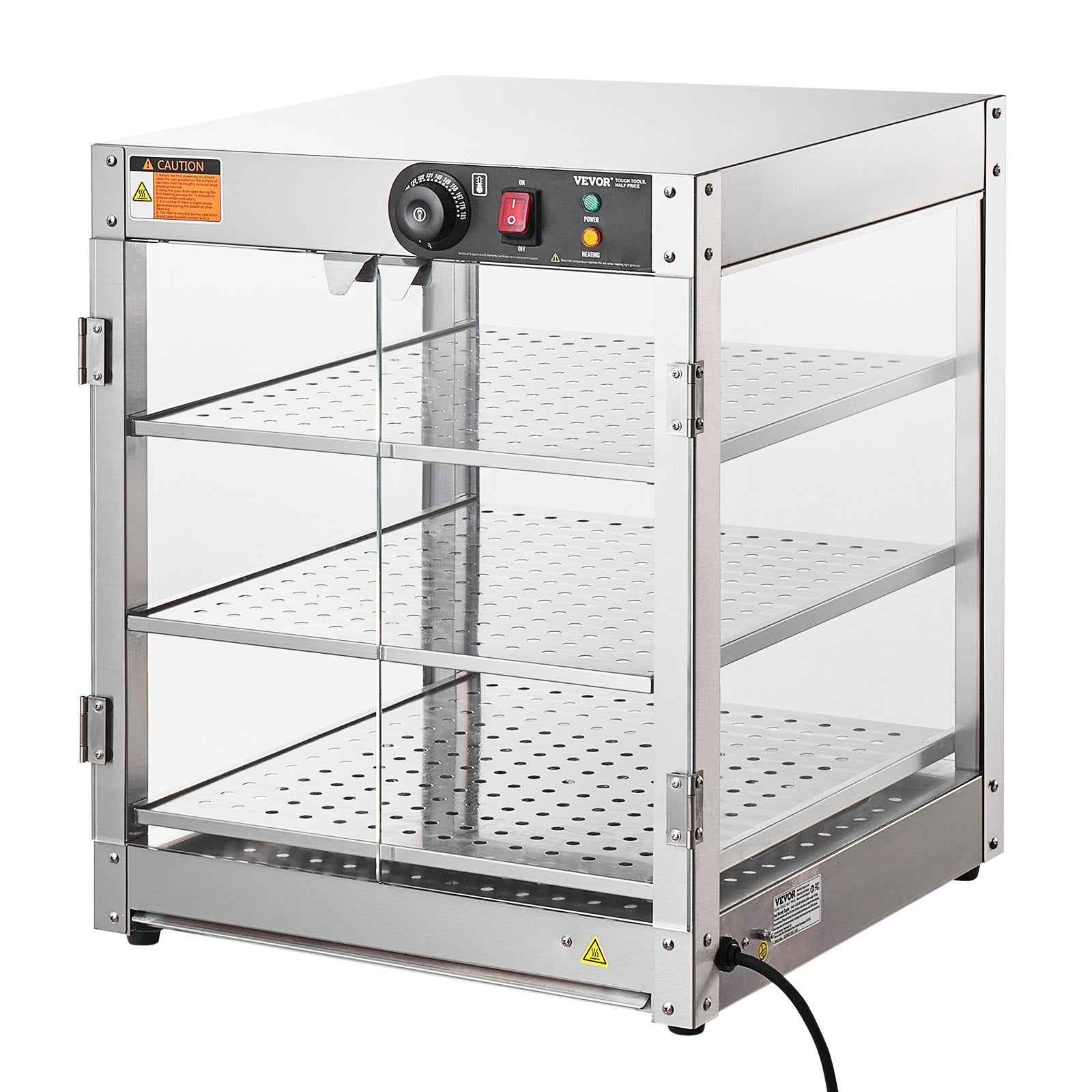3-stöckig, großer Raum: Abmessungen: 510 x 510 x 615 mm. Unser Tisch-Speisenwärmer verfügt über zwei geräumige, lebensmittelechte Ablagen, auf denen Sie Speisen unterschiedlicher Größe frei platzieren können. Ideal zum Aufbewahren und Präsentieren von Pizza, Eierkuchen, Brathähnchen oder Burgern – für lang anhaltende Frische.