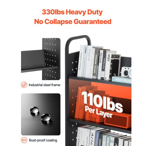 Stabile Tragfähigkeit: Der rollende Bücherwagen aus hochfestem Kohlenstoffstahl trägt pro Lage 50 kg und hat eine Gesamtkapazität von 150 kg. Die rostbeständige Beschichtung sorgt für Langlebigkeit, perfekt für schwere Bücher oder Geräte