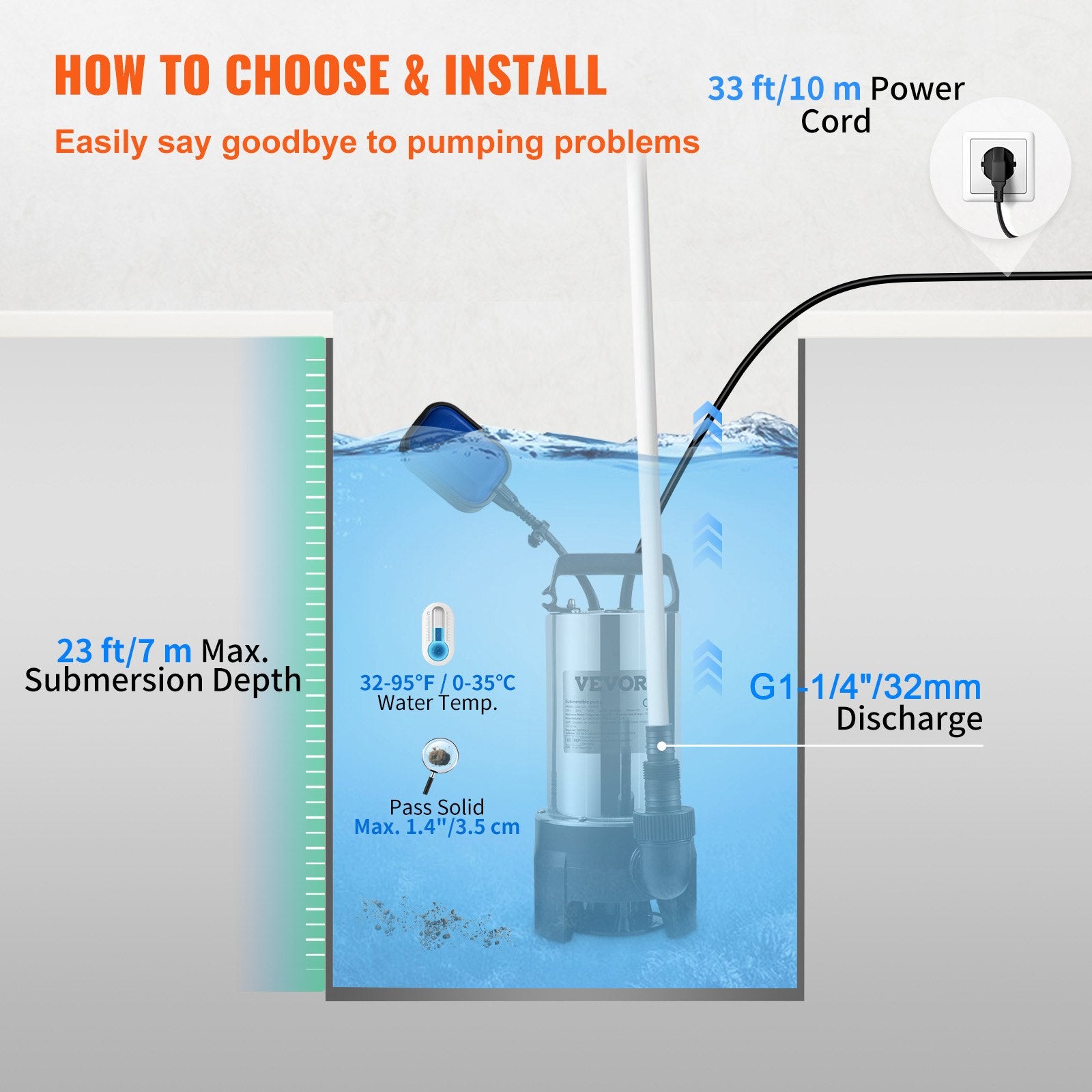 Langlebig: Hochwertige Materialien garantieren erstklassige Ergebnisse. Die Schmutzwasserpumpe verfügt über ein korrosionsbeständiges und langlebiges Edelstahlgehäuse für den langfristigen Einsatz unter Wasser. Sie ist wasserdicht nach IPX8 und CE-zertifiziert, sodass Sie sich keine Sorgen um die Qualität machen müssen.